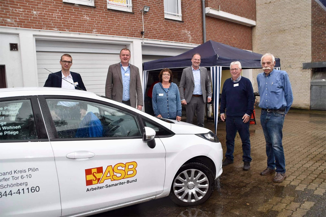 Das Angebot „Essen auf Rädern“ ist beim ASB Preetz besonders gefragt. Über das 100-jährige Bestehen des Stützpunkts freuen sich (von links) Regionalverbandsvorsitzender Thorsten Meyer, Geschäftsführer Sven Mischok, Andrea Spill, Björn Demmin, Dieter Schimmer und Thomas Borkowski.