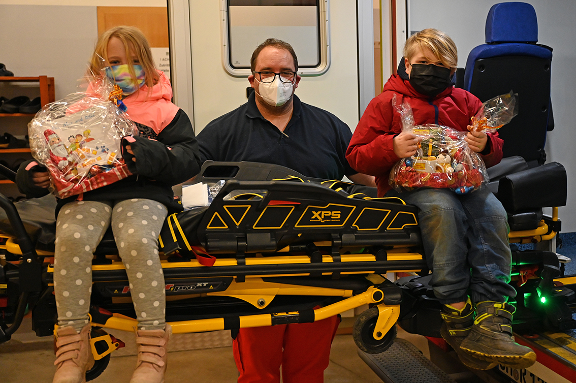 Auf Wunsch der RTW-Besatzung sollte das vorbildliche Verhalten der beiden Kids, die übrigens in der Arbeiter-Samariter-Jugend aktiv sind, besonders gewürdigt werden. Aus diesem Grunde wurden beide – gemeinsam mit ihrer Mutter – kurz vor Weihnachten 2021 in die Heiligenhafener Rettungswache eingeladen und bekamen dort jeweils ein kleines Geschenk überreicht. Ein Rundgang durch die Rettungswache und die Besichtigung eines RTW schlossen den vorweihnachtlichen Besuch ab.