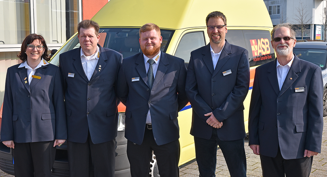 Der amtierende Vorstand des ASB Regionalverband Ostholstein (v.l.n.r.) Kristina Mohr (Jugendleiterin), Michael Mohr (Stellv. Vorsitzender), Davin Kowalik (Vorstandsmitglied), Christian Faecks (Stellv. Vorsitzender), Jörg Bochnik (Vorsitzender).