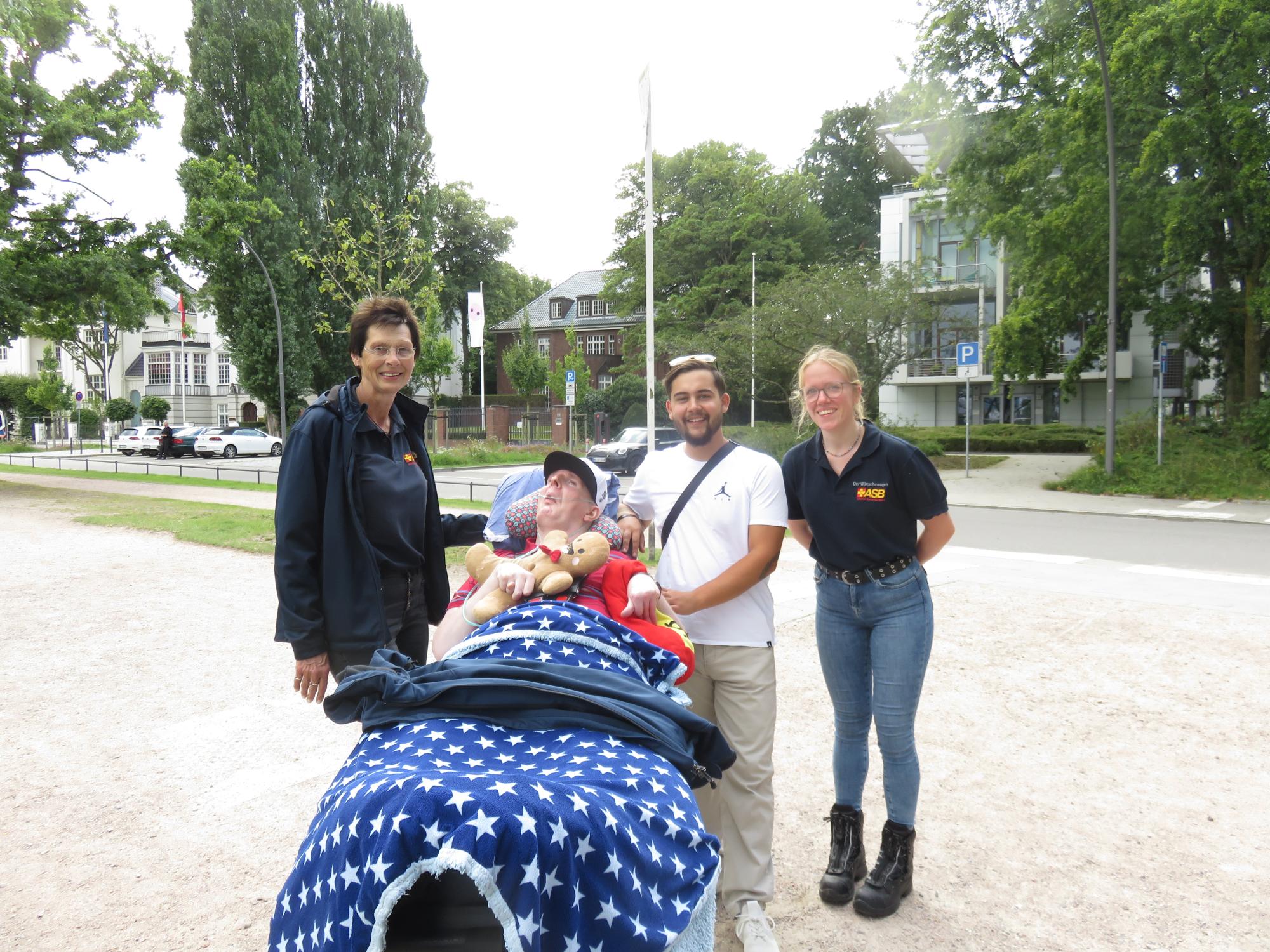 Bei unserer Ankunft im Pflegeheim erwarteten uns Marcels Eltern mit freudiger Erwartung. Ihre Augen strahlten vor Vorfreude, die sich auf uns alle übertrug. Wir machten uns gemeinsam mit Marcels Pfleger Rafael auf den Weg, um ihm einen Herzenswunsch zu erfüllen – das Ziel war klar, die Aufregung spürbar.