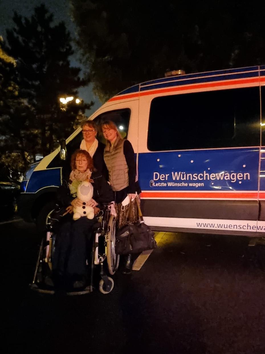 Die Tochter hat alle wichtigen Dinge für die Fahrt nach Hamburg zusammengepackt, Kissen und eine zusätzliche Decke mit Motiven aus der Eiskönigin hat Edith schon auf dem Schoß im Rollstuhl liegen. Dank der Schmerzpumpe ist Edith nahezu schmerzfrei, obwohl der Krebs weit fortgeschritten ist, keine Aussicht auf Heilung oder Besserung mehr besteht. Die Familie ist eng beieinander und genießt jeden gemeinsamen verbleibenden Tag. Die Begleitung durch ein SAPV Teams ermöglicht, dass Edith zu Hause leben kann.