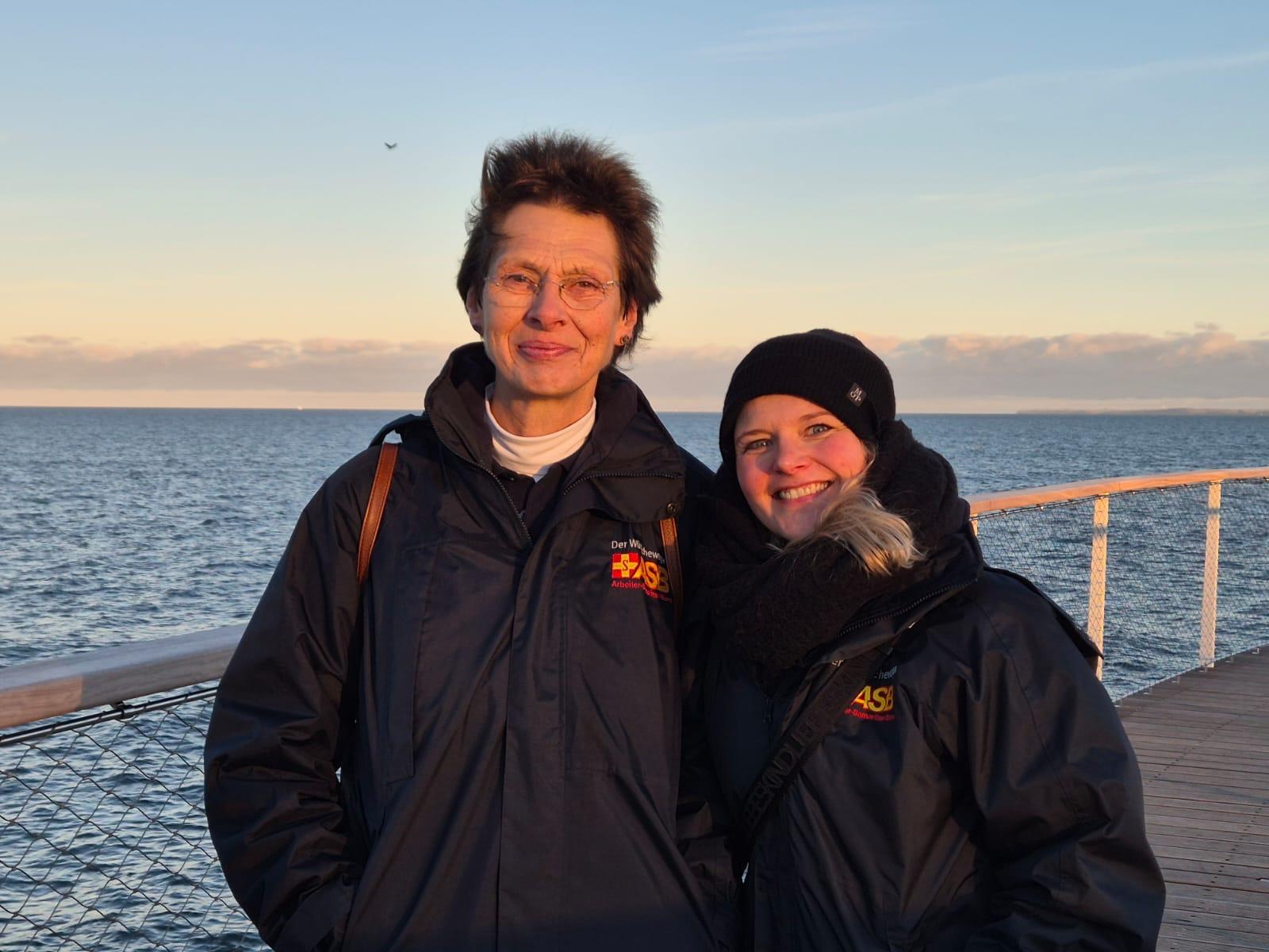 Am Strand angekommen, war das Highlight der Ausflug zur neuen Seebrücke. Eingepackt in eine kuschelige Decke, um die Kälte des Tages zu mildern, genoss Susanne die Nachmittagssonne im Rollstuhl. Ihr Strahlen sprach Bände, als sie leise sagte: „Mein lieber Scholli, was für ein schöner Tag!“ Dieser Moment war pure Lebensfreude – trotz der Anstrengung, die der Ausflug mit sich brachte.