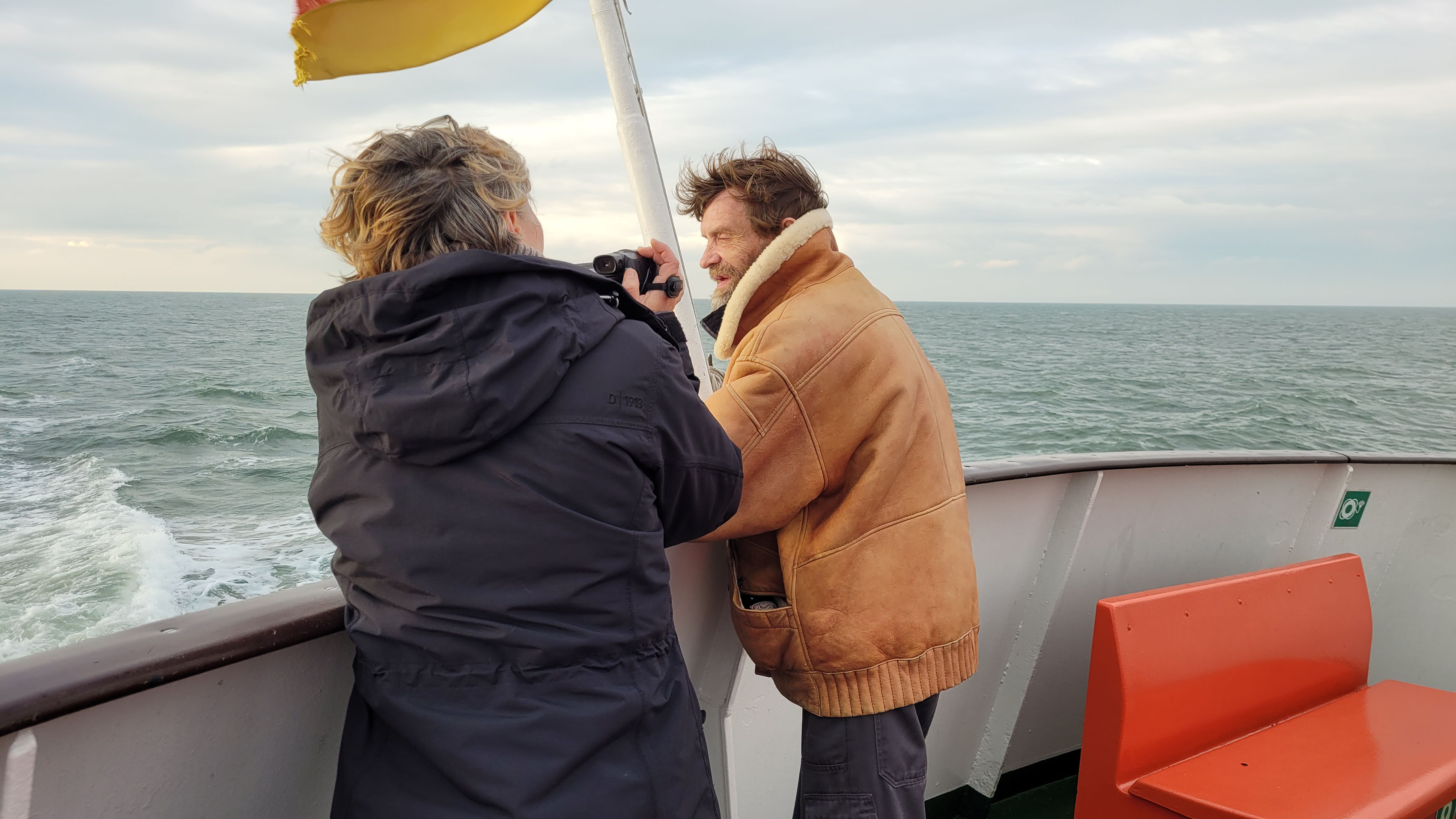 Nur zwei Tage vor Reiseantritt hat Schleswig-Holstein eine schwere Sturmflut erlebt, welche auch den Fährbetrieb nach Helgoland erheblich eingeschränkt hat. Doch einen Tag vor Abfahrt bekamen wir von der Reederei die Zusage, dass unsere Fahrt doch stattfinden könne. Was für ein Glück! So machten Helmut und ich uns in aller Früh auf den Weg, um unseren Fahrgast und seinen Freund und ehrenamtlichen Sterbebegleiter Herrn B. abzuholen. Wie schon vor ein paar Wochen war auch heute das Filmteam vom NDR wieder dabei, um uns auf dieser besonderen Wunschfahrt zu begleiten.