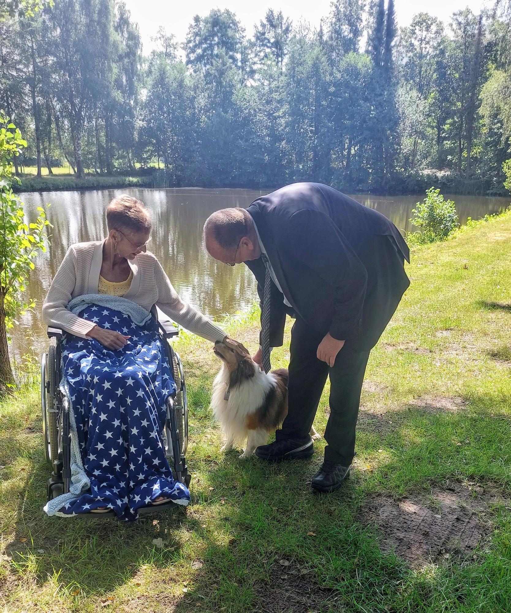 Nach der Trauung ging es bei strahlendem Sonnenschein weiter zu einem idyllischen Angelteich. Die perfekte Kulisse für das Fotoshooting des frisch vermählten Paares. Birgit beobachtete voller Begeisterung das Geschehen – und als der Hund von Birgit und ihrem Ehemann fröhlich dazu kam, stieg ihre Freude noch weiter. Der Anblick der glücklichen Familie, vereint in diesem besonderen Moment, ließ auch uns innehalten und genießen.