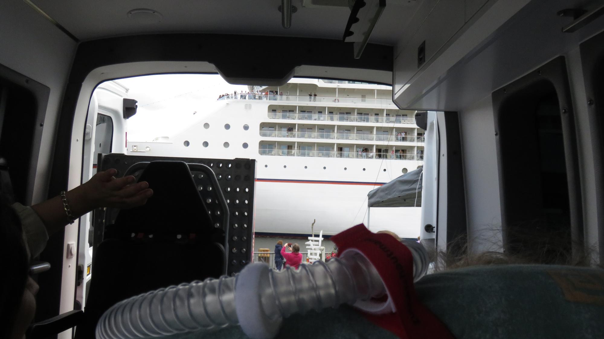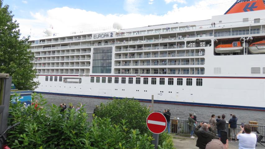 Die Schiffe, die frische Luft und die Züge nebst ihrer Familie und Freunde war dann doch etwas viel. Doch abwarten! Ein ganz lautes Schiffshorn ertönte und kurz vor der Abfahrt fuhr dann noch die Europa 2 vorbei. Da freute sich unser Gast richtig und danach traten wir dann aber wirklich den Heimweg an.