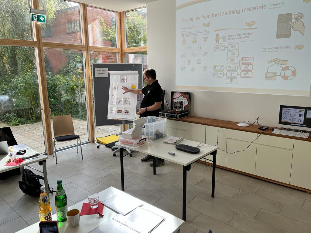 Bei diesem dritten Projekttreffen von Samaritan International (SAM.I), dem europäischen Dachverband der Samariter-Organisationen, wurden die deutschen Best-Practice-Projekte vorgestellt und die inklusiven Medien für Kinder auch interaktiv getestet. Zuvor waren bereits in Italien und Dänemark inklusive Erste-Hilfe-Angebote präsentiert worden, deren schriftliche Zusammenfassung am zweiten Tag in Kiel reflektiert und kommentiert wurde. Nach weiteren Zusammenkünften in Kroatien und Südtirol wird es im kommenden Jahr neben einer englischsprachigen Übersicht über die Projekte Empfehlungen von SAM.I geben, wie auch anderswo die Zugänglichkeit von Erste-Hilfe-Ausbildungen für Menschen mit Behinderungen verbessert werden kann.
