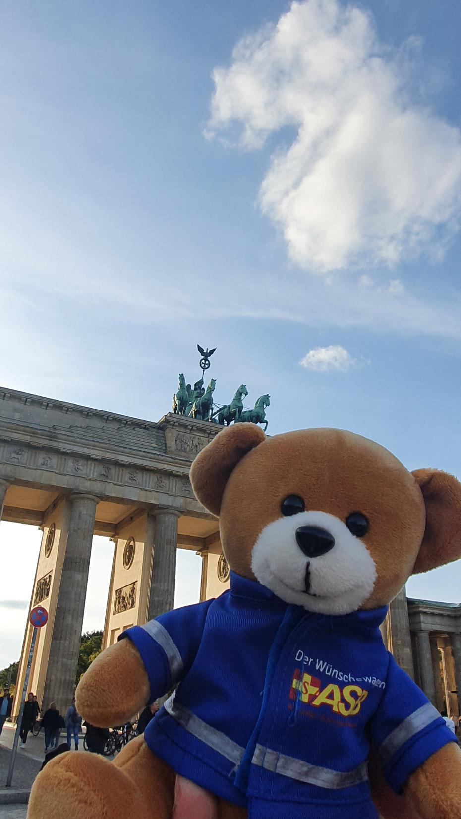 Müde, erschöpft und vor allem glücklich nach 45000 Schritten durch Berlin, machten wir uns auf den Weg in die vertraute Heimat, die wir um 20 Uhr erreichten. Unseren Wünschewagen-Teddy, der mit uns dieses Wochenende gemeinsam erlebt und sich auf viele Fotos geschlichen hat, haben wir Nick zum Abschied geschenkt, als Wegbegleiter und Kraftspender für den Weg, den Nick noch gehen wird.