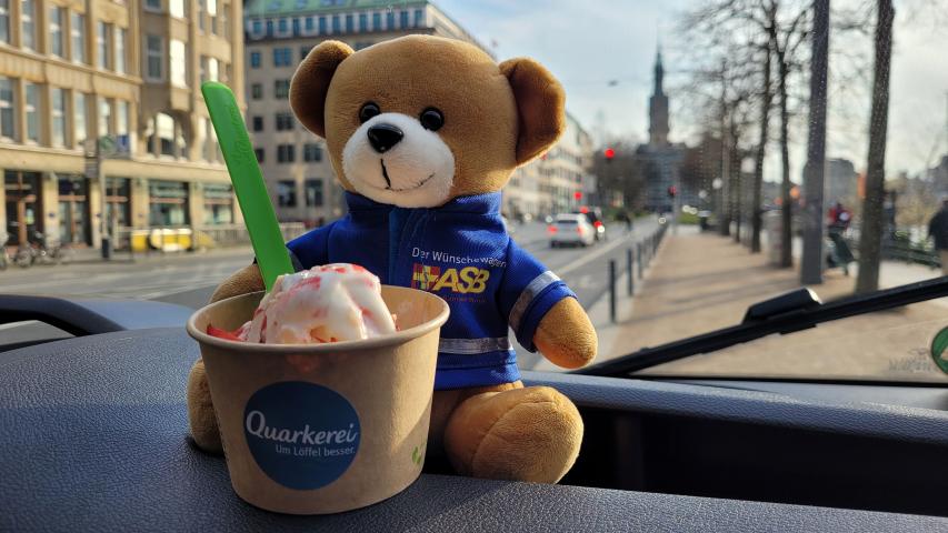 An der Binnenalster sitzend, den Sonnenuntergang genießend und mit einem leckeren Quarkbecher in der Hand ließ Frau P. ihren ganz besonderen Tag kurze Zeit später gemütlich ausklingen.