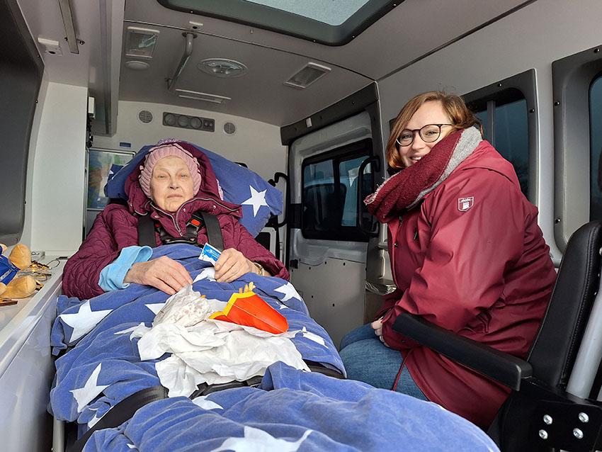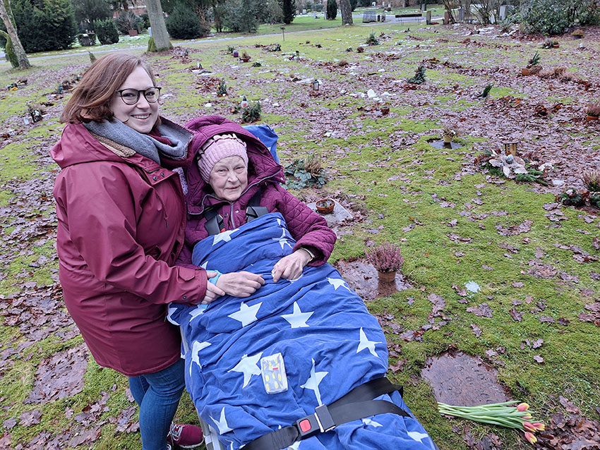 Am zweiten Januarsonntag durften Vera und ich unsere erste Wunschfahrt im Jahr 2024 begleiten. Es sollte für uns nach Geesthacht gehen und von dort zum Friedhof nach Bergedorf. Im Hospiz wurden wir schon ganz aufgeregt von unserem heutigen Fahrgast Frau H. erwartet. Ihr letzter Wunsch war es, noch einmal das Familiengrab auf dem Friedhof in Hamburg-Bergedorf zu besuchen. Da sie leider keinen Kontakt mehr zu nahestehenden Angehörigen hat, hat Anka, die Sozialarbeiterin des Hospizes, uns an diesem Tag begleitet.