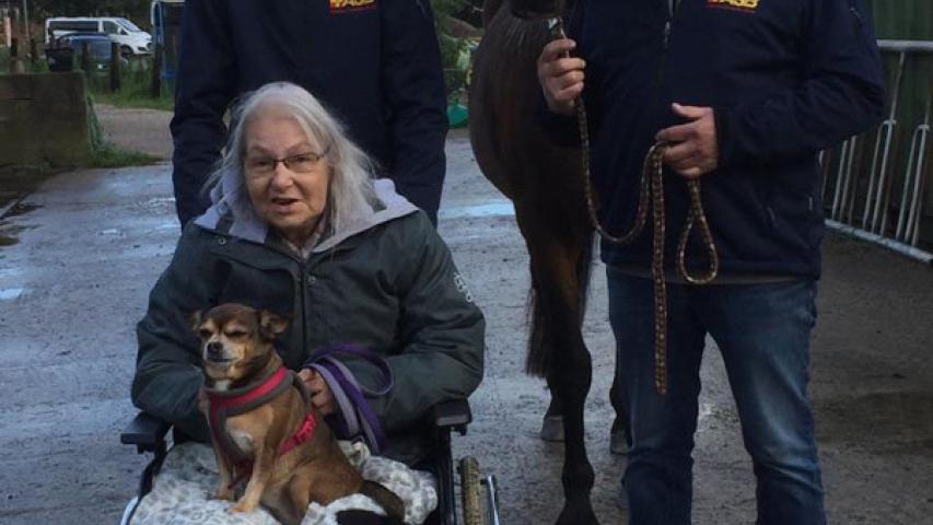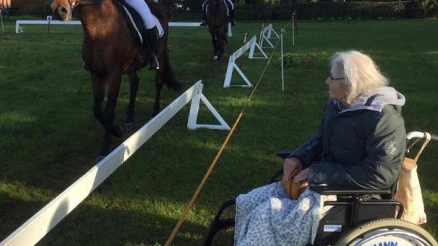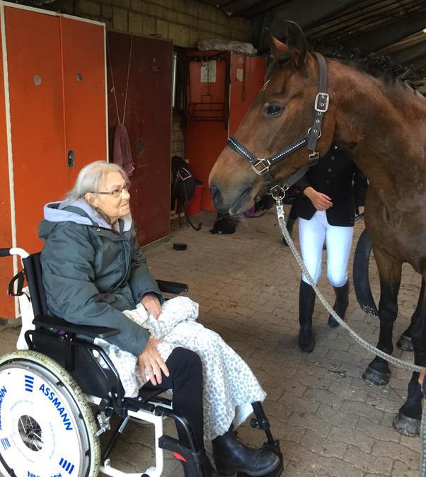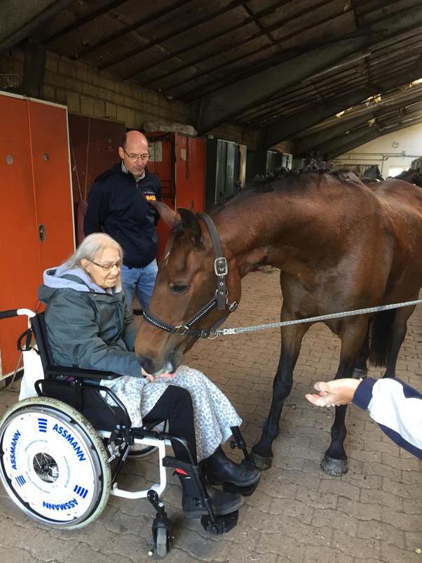 Charly ist die große Liebe von Frau J. „Groß“ im wahrsten Sinne des Wortes, denn es handelt sich um das Pferd der schwerkranken 65-Jährigen, das sie noch einmal streicheln und bei einem Turnier starten sehen wollte.
