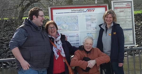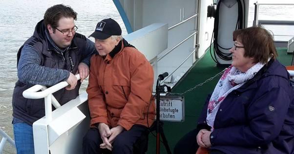 So auch am 29. März, als Harald B. zusammen mit seiner Frau und seinem Sohn mit dem Wünschewagen die Fahrt zum Hamburger Hafen antraten. Herr B. war super motiviert und hat all seine Kräfte mobilisiert, um die steile Treppe hinauf aufs Deck zu bewältigen. Er wollte bei herrlichem Sonnenschein unbedingt ganz oben sitzen, um die Fahrt zu genießen und die dicken Pötte zu beobachten.