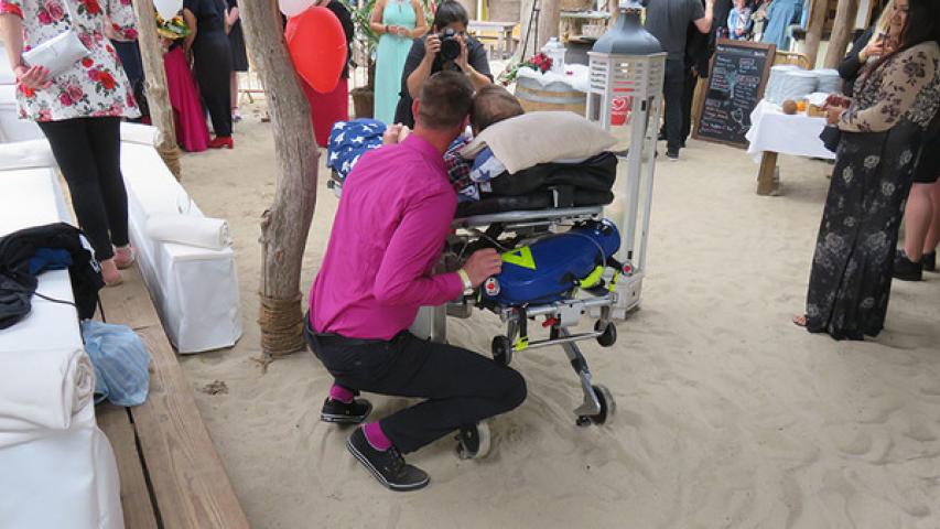 Sie hatten bereits alle Hoffnung aufgegeben, die Hochzeit ihres Sohnes mitfeiern sein zu können. Ganz nebenbei erzählte die Ehefrau von Herrn S. dem Palliativteam der Westküstenkliniken Heide, wie gern sie doch bei dieser Feier dabei gewesen wären. Zu diesem Team gehört auch Finn, der keine Zeit verlor und der Familie vom Wünschewagen erzählte.