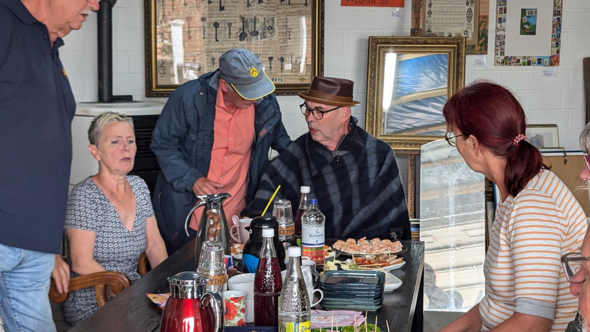 Nach einer gemeinsamen Stärkung, zu der die Nachbarn liebevoll zubereitete Häppchen mitgebracht hatten, gönnte sich Gregor eine kurze Pause. In seinem eigenen Bett, das ihm so vertraut war, ruhte er sich aus – seine Hündin Mimmi an seiner Seite. Danach begrüßte er weitere Gäste, die nach und nach eintrafen, mit einem Lächeln und viel Herzlichkeit.