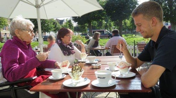 Frau D. machte dieser besondere Tag sehr glücklich. Sie erzählte von vielen Erlebnissen, die sie im Urlaub mit ihrem kleinen Hund hatte, und konnte außerdem beeindruckende Dinge über die Geschichte von Friedrichstadt berichten. Ihr persönliches Highlight war jedoch die Begegnung mit einer Passantin und deren Hunden, von denen einer ganz genau wie ihr eigener aussah, der vor drei Jahren gestorben ist. Wie schön, dass die Passantin die Situation erkannte und ihren Hund ausgiebig streicheln ließ.
