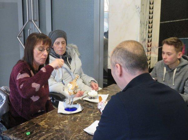 Nach etwas Erholung wollte Frau K. aber so gerne noch ein Eis essen, und so brachen alle nochmals auf. In einem Café beschlossen Familie und Freunde dann doch noch einen schönen gemeinsamen Tag mit Silke R., die wenigstens ihren kleinen Wunsch erfüllt bekam und sich sehr gefreut hat.