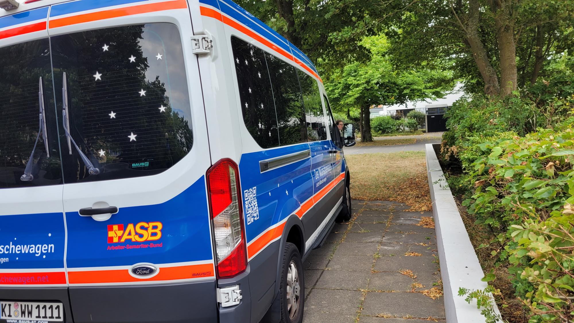 Die Nacht auf Sonntag war kurz für mich: Vom Nachtdienst kurz nach Hause und ein paar Stunden ausruhen, dann machten wir uns bei gutem norddeutschen Wetter auf den Weg nach Gettorf, um unseren Fahrgast Herrn D. aus dem Hospiz abzuholen. Für Jonas und mich war es der erste Besuch in diesem Hospiz. Wir wurden von den Pflegekräften herzlichst empfangen und zum Zimmer von unserem Fahrgast geführt. In seinem liebevoll eingerichteten Zimmer wartete Herr D. schon sehnsüchtig auf uns, sodass es direkt losgehen konnte. Einmal schnell umgestiegen auf unsere Fahrtrage, Ziel ins Navi eingetippt und los ging die etwa 20 Minuten lange Fahrt. Während der Fahrt rief Herr D. bei seiner Frau zu Hause an, sodass alle (Ehefrau, Sohn und Schwiegertochter) Bescheid wussten, dass wir gleich da sind. Nachdem wir die beste Zufahrt zu seiner Wohnung direkt am Wasser in Schilksee gefunden haben, wurden wir vor Ort schon erwartet.