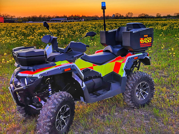 Das Quad, gefördert durch den ASB-Landesverband Schleswig-Holstein, soll aufgrund seiner Wendigkeit und Geländetauglichkeit überwiegend bei Großveranstaltungen als mobile Unterstützung im Sanitätsdienst zum Einsatz kommen und z.B. schnell einen Notarzt zum Ort des Geschehens bringen. Als Verbindungsfahrzeug wird es ebenfalls zur Führungsunterstützung und bei Suchaktionen genutzt.