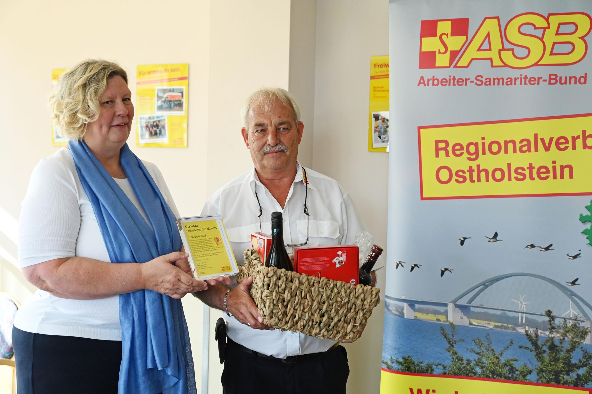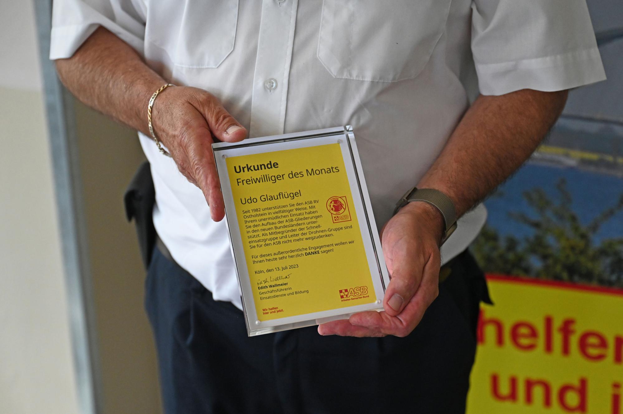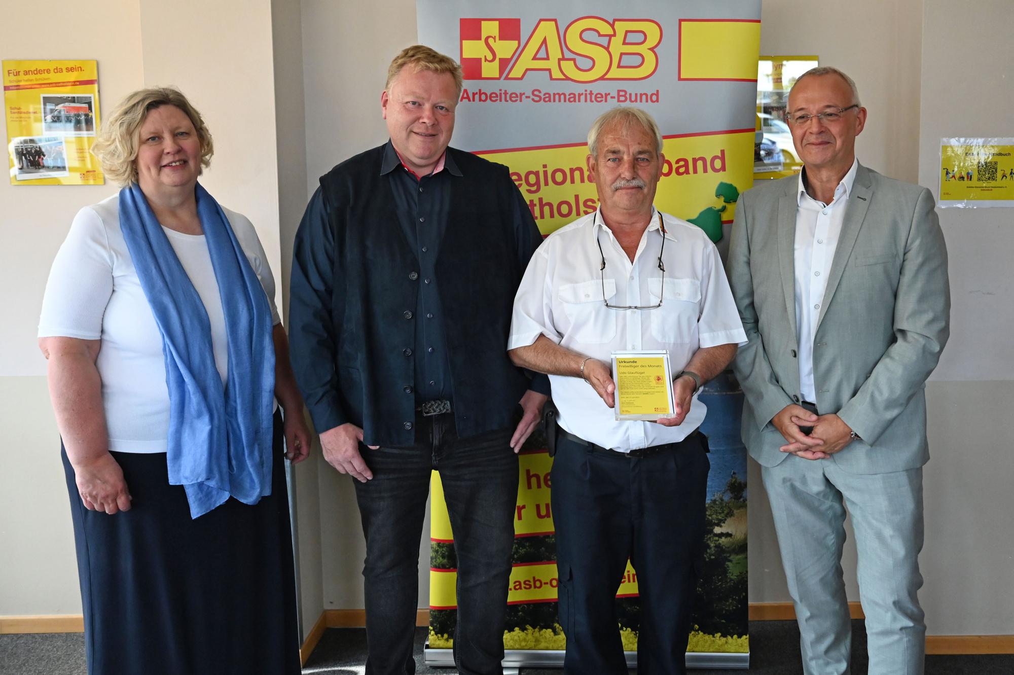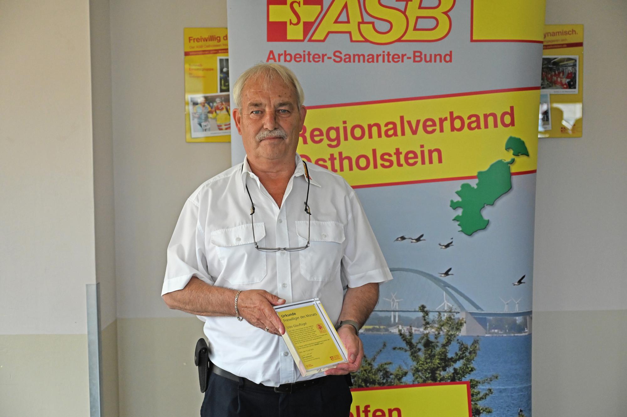 Unter der Rubrik „Freiwillige:r des Monats“ dankt der ASB-Bundesverband seit vielen Jahren verdienten Mitarbeiterinnen und Mitarbeitern, die sich in besonderem Maße für das Ehrenamt im ASB engagieren. Hierzu gehört auch Udo Glauflügel, der sich neben seiner beruflichen Tätigkeit beim ASB Ostholstein seit langer Zeit in erheblichem Maße zusätzlich ehrenamtlich eingebracht hat und auch in seinem Ruhestand heute immer noch aktiv ehrenamtlich dabei ist.
